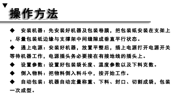 ◆ 包裝機與計量裝置配套即可自動完成送料、計量、充填制袋、日期打印的全部包裝過程,并自動完成計數(shù)。