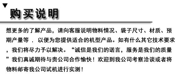 ◆ 制袋形式:本機可以根據(jù)客戶需要制成枕式袋、打孔掛袋。