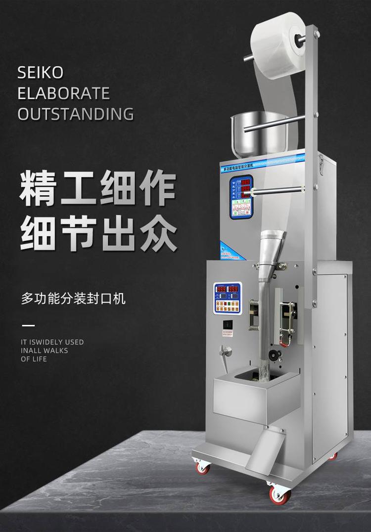 5、智能型溫控儀控制。自動(dòng)完成計(jì)量、制袋、充填、封合、打印批號(hào)、切斷及計(jì)數(shù)等全部工作。