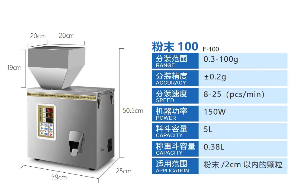 定量范圍:1克-100克之間,克數(shù)可調(diào)